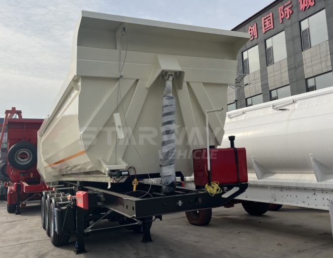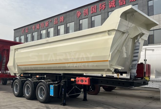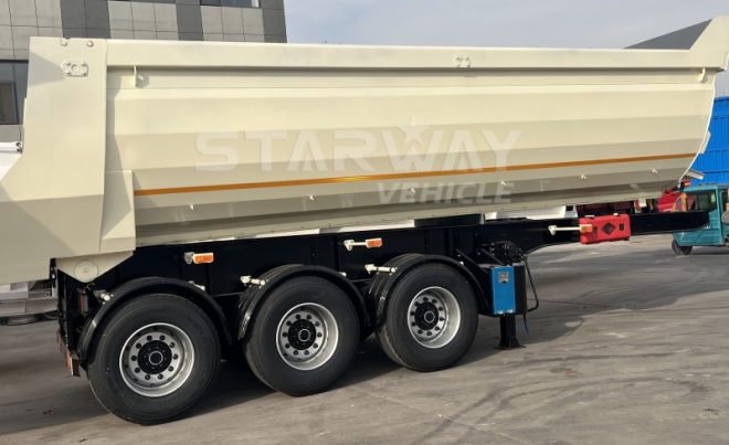 The trailer’s beams and longitudinal beams are made from premium manganese steel plates. This ensures superior strength and toughness, making the Starway dump trailer ideal for transporting sand, coal, gravel, and other bulk cargo. Customers can expect reliable performance even under maximum load conditions.